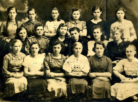Фото 2. 1945 рік. Перший повоєнний випуск 7 класу Нетішинської семирічної школи.