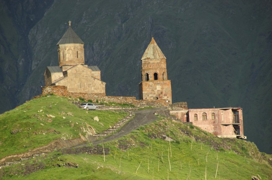 P.S. Грузія своєрідна, по-своєму неповторна країна. Саме на трасі маршруту на Казбек на тлі гори, на вершині високого схилу видно храм Цмінда Самеба, церкву Святої трійці-хрестової - єдиний тутешній купольний храм, що побудований у ранній період християнства. Святі місця, тут все просякнуто духом легенд. За однією з них храм заклали в місці, вказаному самою Пресвятою Богородицею, що явилася тут пастухам, друга розповідає про орла, котрого випустили на волю і він сів на найвищу скелю (плоске закінчення хребта Квенет-МТА (долина квітів). Точний час будівництва храму невідомий, історики датують його 10 століттям.